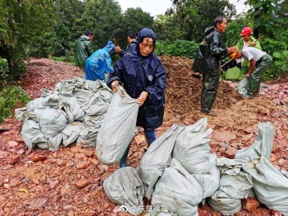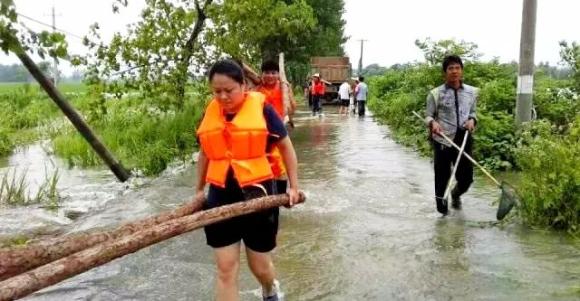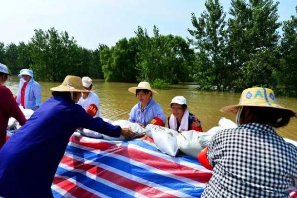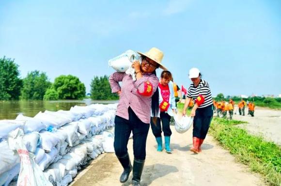 很多人觉得女人没力气,孱弱,但是在渔薪镇,龙华中学老师丁淼的妻子和男人们一起搬运木材和沙袋;抢险途中还自费购买水和副食分发给村民和抢险人员。渔薪镇妇女全体上线,不能扛沙袋,我们装沙袋总是可以。