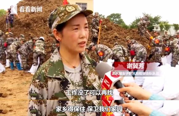 面对来势汹汹的洪水,脚下是守护生命的堤坝,身后是赖以生存的家园。守住堤坝,就守住了家园,守住了未来,守住了千千万万的人。这不止于性别,止于年龄,止于体力,这是贯穿于整个中华儿女的血液,这是整个民族的勇气。