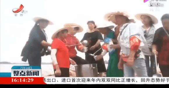 巧了,这也是一群平日里跳广场舞的阿姨,她们每天给防汛一线小哥哥们做包子、煮绿豆汤,“给他们补充一下体力。”