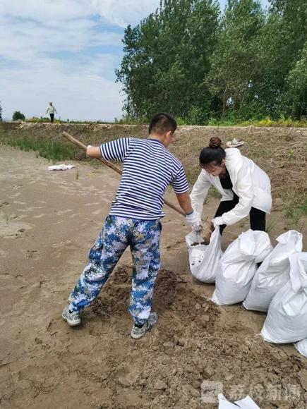 而就在小哥哥们吃包子,喝绿豆汤休息的间歇,姐姐们也没有停下来,“偷偷”地帮助他们灌沙袋、垒子堤,见缝插针地帮助抗洪。