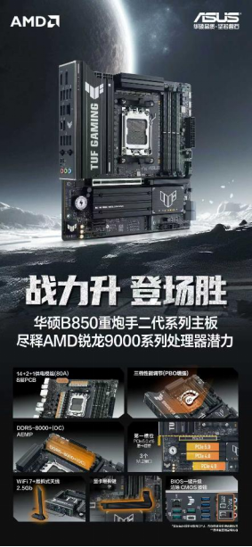 战力升,登场胜!华硕B850重炮手二代系列主板性能跃升,尽释AMD锐龙9000系列处理器的潜力!你的下一台性能猛兽,就缺这块“重炮手”来点燃!近日有装机需求的小伙伴即刻加购吧!