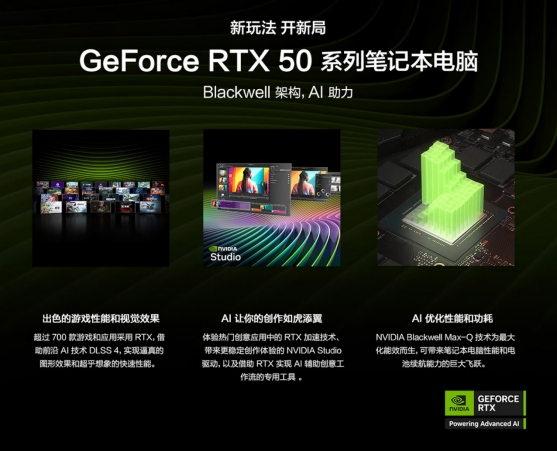 升级搭载全新NVIDIA GeForce RTX 5090独立显卡,拥有24GB GDDR7大容量显存,借助NVIDIA DLSS 4实现性能倍增,以至高1824 TOPS GPU AI算力高效处理视频剪辑、三维动画、平面设计等高负载创作任务。得益于第9代NVIDIA视频编码器的强大功能,实现速度与创意的碰撞,带来从DaVinci Resolve到Adobe Premiere Pro等应用的全流程视频导出加速;借助RTX显卡,快速处理4K、8K乃至12K分辨率创作任务,以创纪录的速度导出项目文件;在光线追踪核心的加持下,以极快速度创建并渲染复杂场景,打造更流畅、高效的动画制作流程。还有NVIDIA Studio平台提供的超700款采用RTX的游戏和创意应用,辅助创意工作流,实现创作效率的阶梯式跃升。