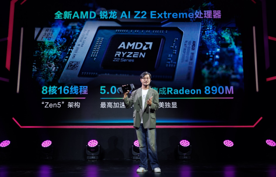 ROG Xbox掌机X首发搭载全新AMD锐龙AI Z2 Extreme处理器,为游戏体验提供强劲动力。该处理器核心基于“Zen 5”及“Zen 5c”架构打造,拥有8核16线程,最高时钟加速频率可达5.0 GHz;集成RDNA 3.5架构16 CU的AMD Radeon 890M集显,性能可媲美独显。同时,处理器内置高达50 TOPS算力的NPU单元,显著加速本地AI处理,带来更智能的游戏与应用体验。