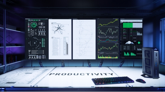 游戏场景中ROG魔霸9 Mini无论是《赛博朋克2077》光追超级画质,还是《艾尔登法环》全屏特效,帧率都能稳如泰山。搭配ROG自有游戏中心软件,一键切换“静音”、“增强”、“性能”模式,让玩家在安静、平衡和高性能游戏的需求之间无缝切换。不光游戏画面表现优异,它配备的双HDMI 2.1、双DP 2.1及USB4 Type-C接口让视频输出接口拉满,还能支持五台4K显示器同显!