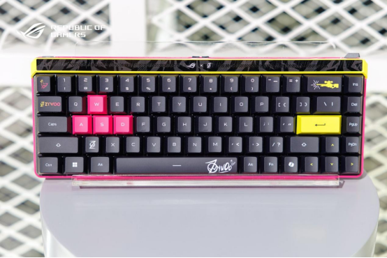 对于追求冠军同款的玩家而言,新品ROG魔导士Ace HFX ZywOo联名键盘无疑是首选。其采用双料Major冠军ZywOo亲自挑选的粉色和黄色搭配的外观设计,极具视觉冲击力。键帽设计上融入了游戏元素,包括ZywOo的个人LOGO以及大狙图案等,细节之处彰显独特个性。此外,防尘盖也特别设计了ZywOo的花纹,增添了收藏价值。