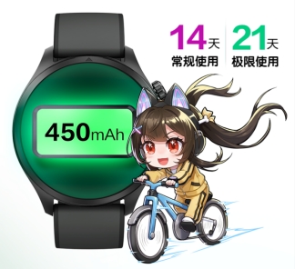 l 悦心G1搭载450mAh大容量电池,在开启AOD、动态表盘,且用户经常运动的情况下续航可达一周;关闭AOD、使用静态表盘,用户偶尔运动的情况下续航可达14天,开启省电模式的极限使用场景下续航更是可达21天。