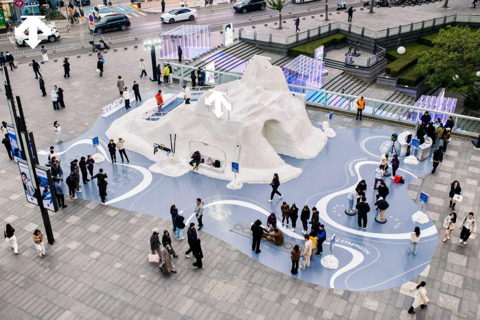 与此同时,迪桑特于沈阳万象城东南广场特别打造「城市滑雪力练场」,将滑雪训练概念打破场域界限,通过城市核心商圈传递冰雪运动的精神。活动现场设置五大主题区域,结合造雪装置与滑雪模拟挑战,营造浓郁雪场氛围,让参与者在都市中也能感受滑行的速度与力量。