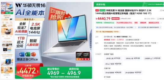 年末双十一大促向来是换机高峰期,对于大学生和初入职场的年轻人来说,一台能够兼顾学习、办公与娱乐的轻薄本早已成为高效生活的必备伙伴。在今年的4K档笔电中,华硕无畏16 2025凭借AMD锐龙7标压处理器、2.5K 144Hz高分高刷大屏以及至高40GB内存扩展,成为值得重点关注的选手。双十一购机部分地区可享至高10%政府补贴,到手价4472.1元(活动详情可咨询客服了解)。