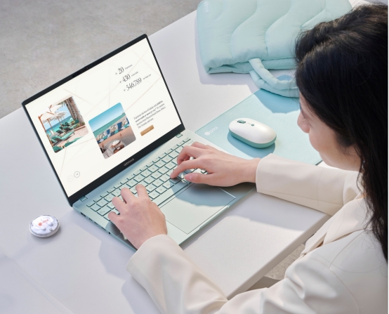 对于年轻用户而言,数码装备也是个性表达的一部分。华硕a豆14 Air 悦享版推出了鼠尾草青、蜜桃甜心、瑰蜜粉金三款多巴胺配色,不论你是温柔系还是元气派,都能找到属于自己的色彩。金属机身轻约1.39kg、薄至15.9mm,装进包里几乎无负担,而且内置70Wh冻龄大电池,续航最长可达约17.5小时,无论是面对早八上课、赶地铁通勤、出差旅行等移动场景,还是去图书馆、咖啡店,都能轻松携带、高效持久。