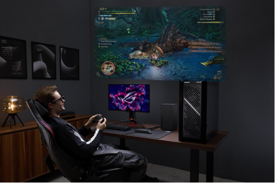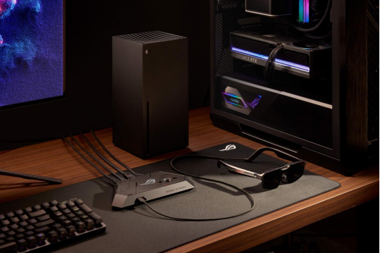另一个重磅新品——ROG AR眼镜,完美融入ROG生态系统,以轻量可穿戴形态提供桌面级多功能体验,备受游戏玩家与极客发烧友的青睐。通过ROG控制器驱动,ROG AR眼镜具备非常广泛的连接性。