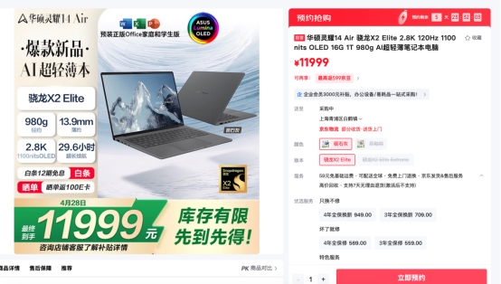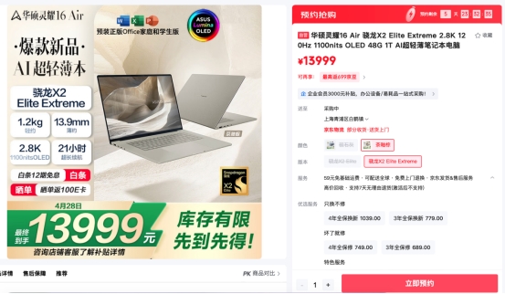 凭借最新骁龙X2系列平台的前沿架构与性能表现,华硕灵耀Air系列深度赋能移动办公,引领AI PC发展潮流。新品现已开启预约,点击下方链接,了解更多产品信息。