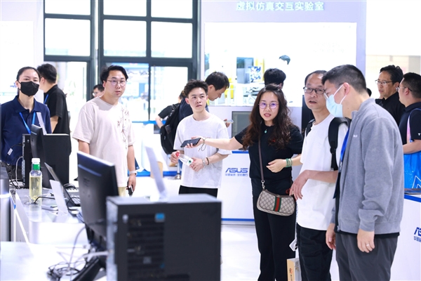 展会期间,华硕商用立足教育信息化发展趋势与校园全场景应用需求,匠心打造了智慧教研中心、AI算法研创中心、工程设计与制图实训专区、行政效能中心、商用级保障说明区以及创作工坊展示区等六大沉浸式体验专区,直观展示华硕在教育数字化领域的完整布局,让参观者近距离感受智慧校园的高效与便捷。